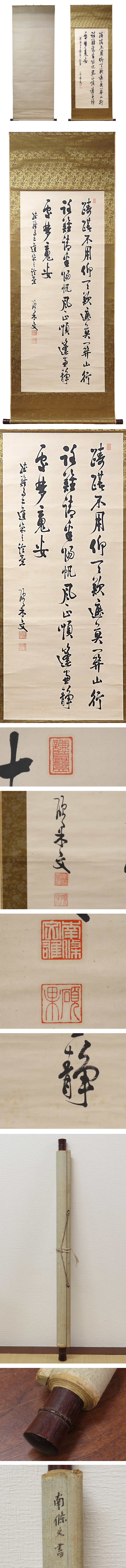 【月】【書画 掛軸035】模写 南条文雄 三行書 真宗大谷派僧侶 仏教学者 宗教家 肉筆 紙本 岐阜県 福井県憶念寺 碩果 わが国最初の文学博士 收藏