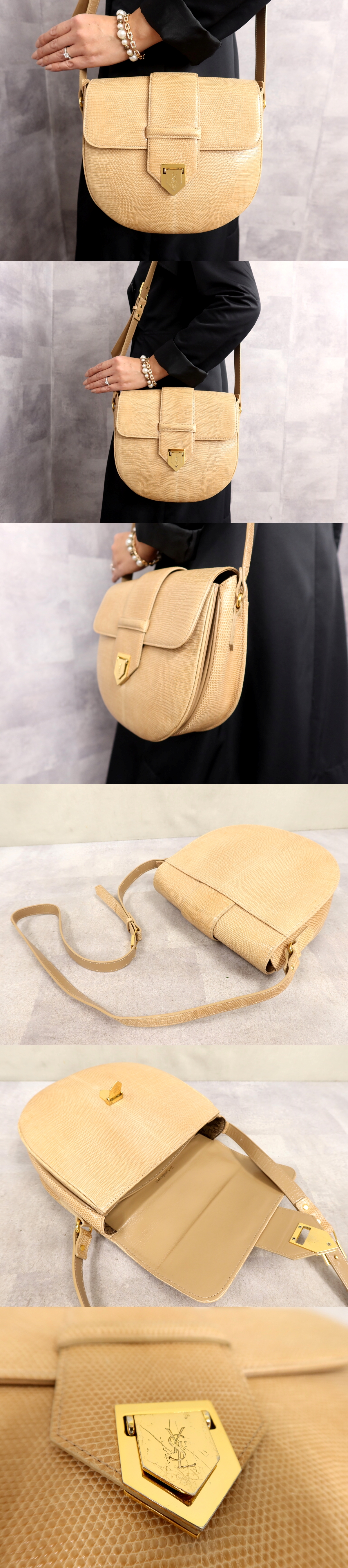 ●美品●YSL Yves Saint-Laurent イヴ・サンローラン●リザード 本 トカゲ 革 カーフ レザー 本革●ショルダー バッグ●ベージュ●Js63262 收藏