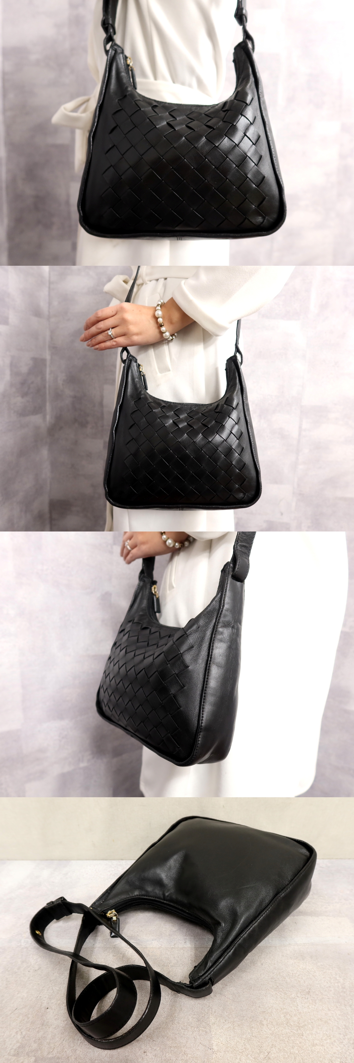 ●超美品●BOTTEGA VENETA ボッテガ ヴェネタ●イントレチャート●ラム レザー 本革●ワンショルダー バッグ●黒●ゴールド金具●Js63269 收藏