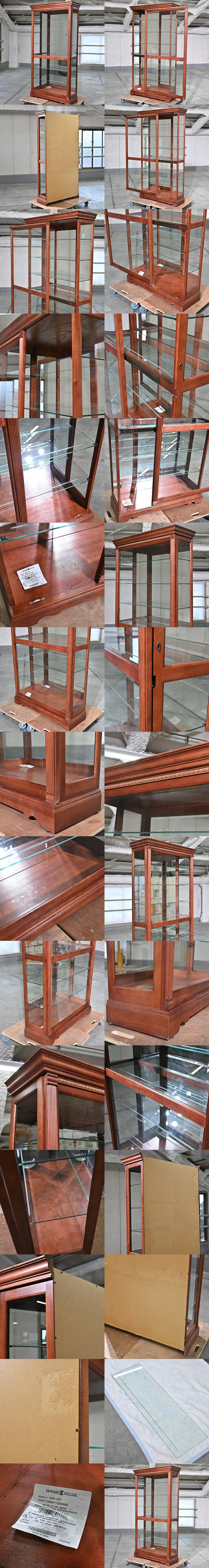 ★アメリカ製 ハワード・ミラー 38万「680-337」キュリオケース キャビネット チェリー調 ガラス棚板 飾り棚 照明付き Howard Miller 收藏