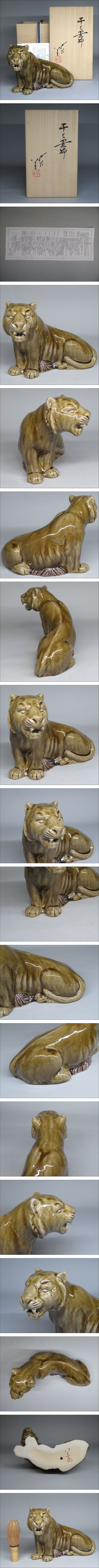 | 人間国宝 三代徳田八十吉(徳田正彦)作■干支置物 「寅」 虎 置物 共箱 | ||