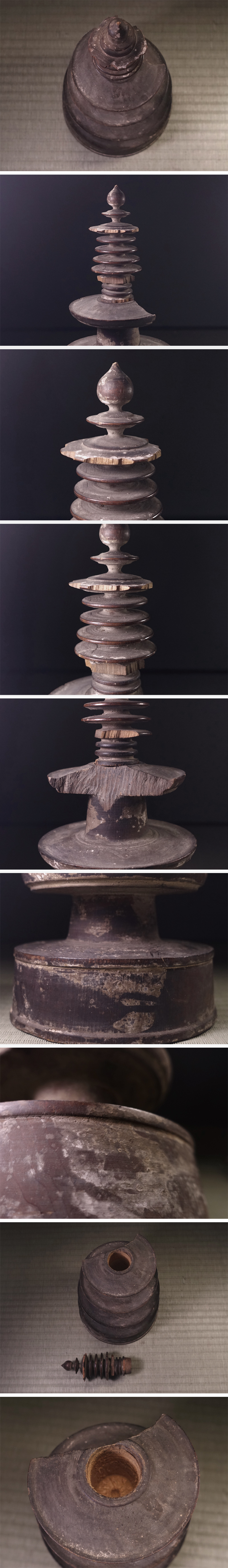 ∇花∇荘厳仏教美術 江戸時代の造立 倣法隆寺百万塔 木造轆轤挽白土化粧三重小塔 33.5cm 收藏