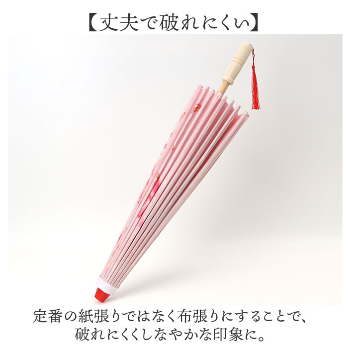 | 商品説明 | ・・【和の演出を楽しむ】 ・・和装での写真撮影にピッタリな和傘が登場。 ・【写真を華やかに】 ・・七五三や成人式、コスプレなど着物の写真を華やかに演出してくれるアイテム。 ・【丈夫で破れにくい】 ・・定番の紙張りではなく布張りにすることで、破れにくくしなやかな印象に。 ・【和にこだわったデザイン】 ・・傘の中棒や持ち手、親骨など各所に木製のパーツを使用しているので、和なイメーシがさらにアップ。 ・【手元を彩るデザイン】 ・・持ち手のタッセルがポイント。華やかな印象を与えてくれるデザイン◎ ・【さまざまなシーンで活躍】 ・・日本舞踊のお稽古や劇の小道具、和室のインテリアなど幅広く活用できる上品で華やかな和傘。 |