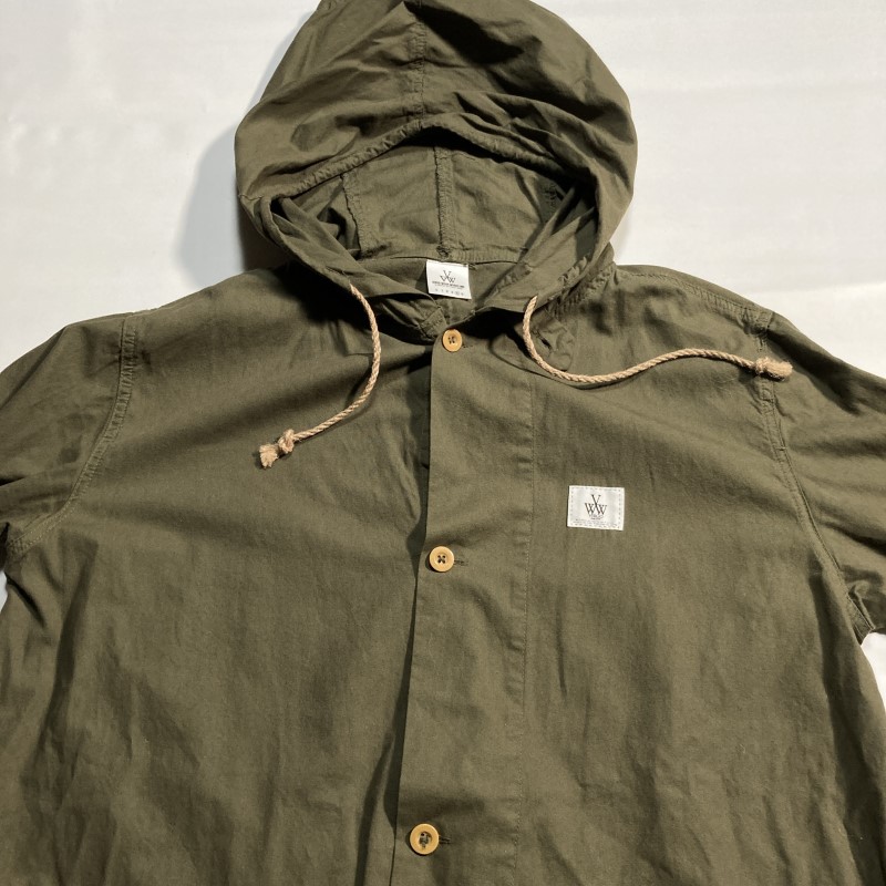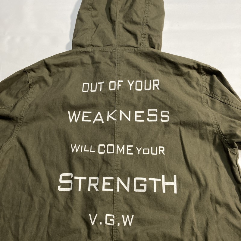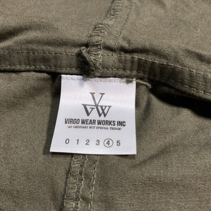 VIRGO WEAR WORKS★希少サイズ4★背面メッセージ 薄手モッズコート ジャケット フード カーキ ヴァルゴ ルード パンク ロック 收藏