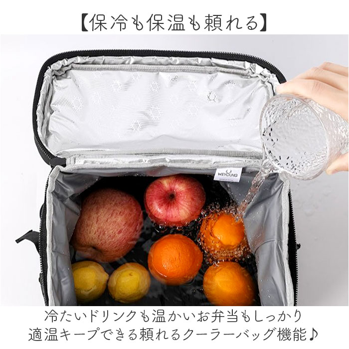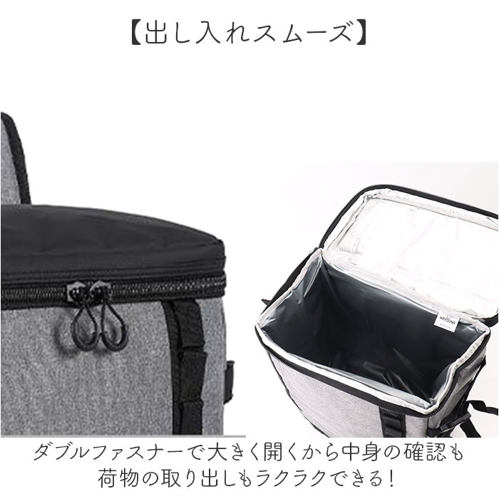 | 商品説明 | ・・【収納力抜群の保冷リュック】 ・しっかりとした生地で保冷も保温もできてとにかく使いやすい保冷バッグ! ・ ・【保冷も保温も頼れる】 ・冷たいドリンクも温かいお弁当もしっかり適温キープできる頼れるクーラーバッグ機能で安心♪ ・ ・【たっぷり入る大容量】 ・お買い物からアウトドアまでたくさんの荷物がたっぷり収まる嬉しい大容量サイズ◎ ・ ・【出し入れスムーズ】 ・ダブルファスナーで大きく開くから中身の確認も荷物の取り出しもラクラクできる便利な設計! ・ ・【肩への負担を軽減】 ・広めの肩ベルトが重い荷物もやさしくしっかり支えて長時間背負っても疲れにくい快適仕様。 ・ ・【便利なポケットが充実】 ・フラップ上部、正面にはファスナーポケット、両サイドにメッシュポケットで使い勝手抜群! ・ ・【自分好みにカスタマイズ】 ・カラビナが付けられるループにはアイテム追加も自由自在、反射材付きで夜道も安心設計! |