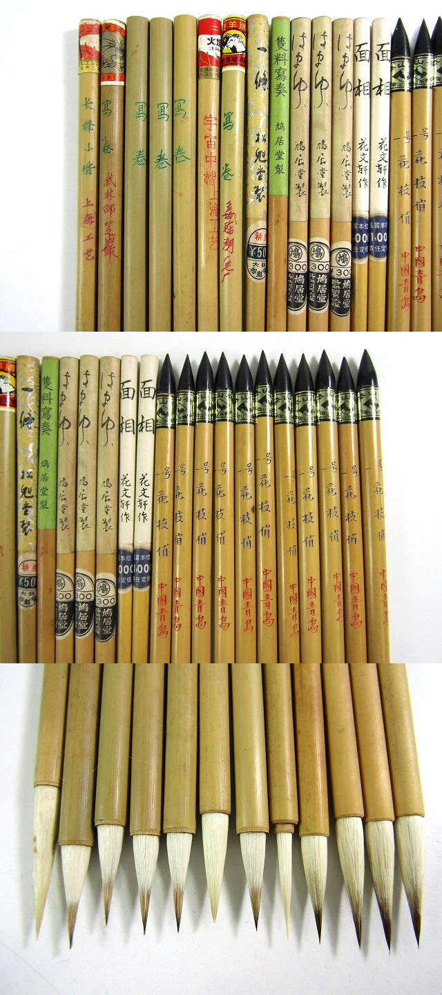 未使用 筆 日本製 唐筆 上海工藝 鳩居堂 中国青島 など 書道具 書道筆 文具 まとめて 25本【説明欄に詳細写真有り】の出品です。