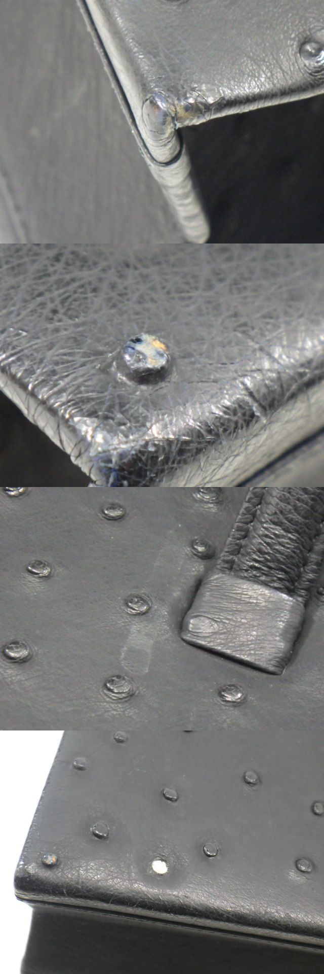 h5B084R1 オーストリッチ ハンドバッグ バッグ ブラック ガマ口 ミラー付き フォーマル 入学式 卒業式 パーティ 收藏