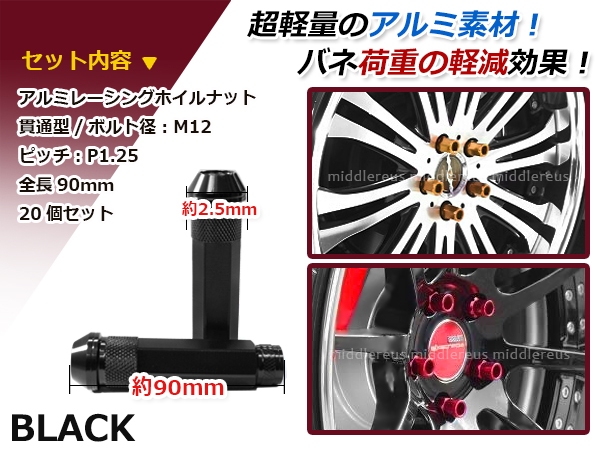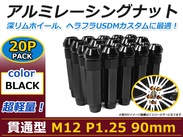 90mm ロングホイールナット M12 P1.25 20本 ブラック USDM/JDM/ヘラフラ/スタンス/NRG/XXR/326/深リム ホイール 收藏