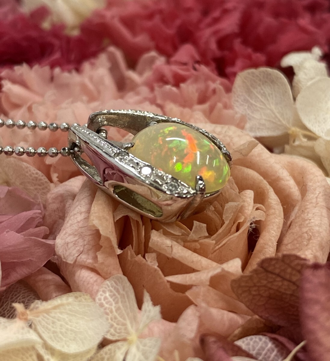 オパール メレダイヤ シルバーネックレス 925 パワーストーン 一粒ネックレス 一粒石 24む224 收藏