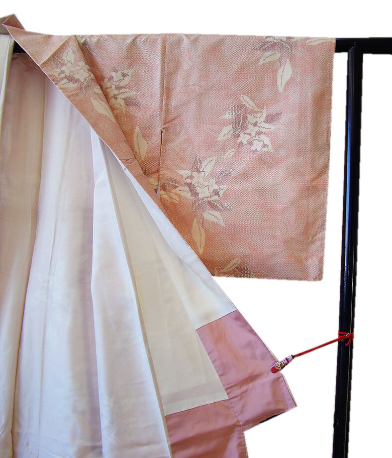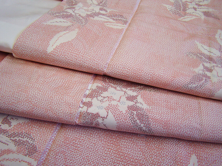 | 商品説明 | こちらのお品は「袷」ですので10月から5月までお召頂ければと思います。 しなやかな紬は、着易く動きも軽く、着くずれしない腰の強さを併せ持った お洒落着としていつでもどこへでもお気軽にお愉しみ頂けご愛用頂けるお品です。 とてもしなやかなシャリやハリ感ある肌触りも心地よい柔らかな紬地は、 白色地に赤、灰青色等の花草柄の織柄、 八掛は撫子色(正絹)、幅広い年代の方にお召し頂けます。 |