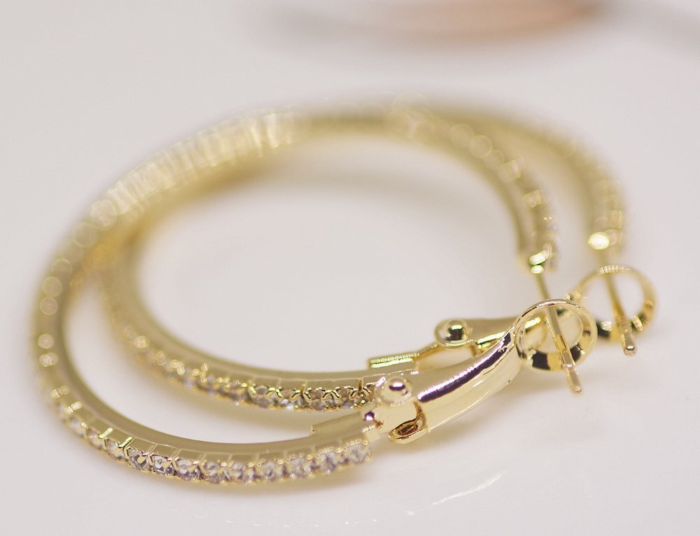 18K RGP ゴールド ダイヤ CZ 30mm直径 リング ピアス gp5755 |