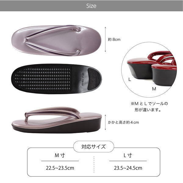 | 光沢のあるエナメル・パールが上品な ウレタンソールのカジュアル草履 高級感のある素材でカジュアルな普段着 から綺麗目コーディネートまで幅広く合 わせることができます ウレタンソールと柔らかな鼻緒が足に優しい履き心地 底には滑り止めがついているので、雨や雪の日でも 安心して履きくことができます 普段着だけでなく、旅館や飲食店などの仕事用 お稽古用など、たくさんのシーンでお使いいただけます ◆生産地:日本 ◆素材:鼻緒・天生地:合成皮革 台:ポリウレタン ◆サイズ M寸:22.5~23.5cm かかと高さ:約4cm ◆色 No,10 白 ※こちらの草履はご注文になる場合がございます 注文の納期…お急ぎの場合は在庫確認のお問い合わせください 底(裏側)がウレタンソールですので、すべりに 強く丈夫、雨の日の外出や、お店の厨房等、 滑りやすい場所でも大活躍です。 ★沖縄・北海道・その他離島は送料別途かかります | ||