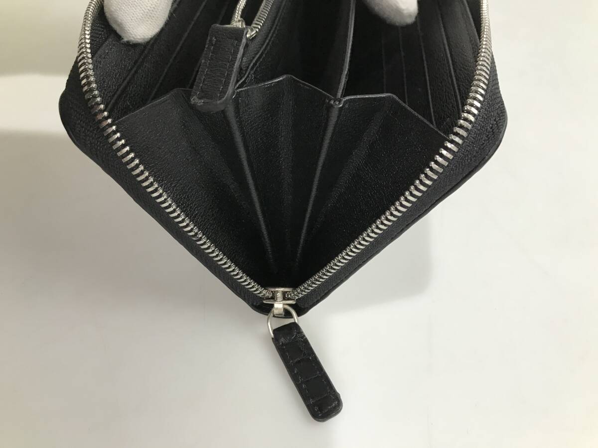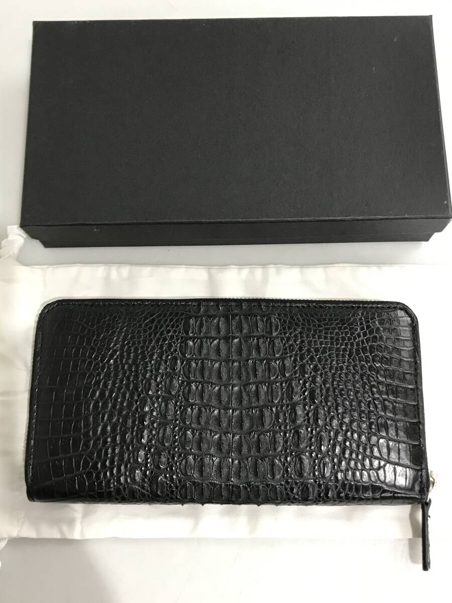 HG7404 カイマン 長財布 ラウンドファスナー ワニ革 レザー ブラック 小銭入れあり 専用袋・箱付き 未使用品 收藏