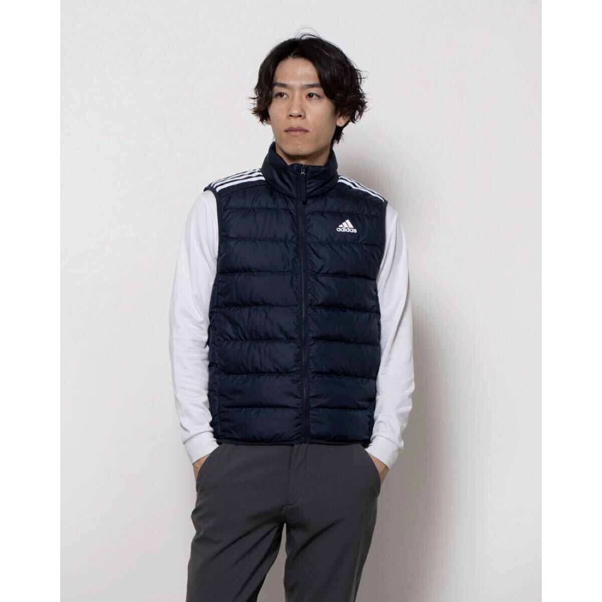新品 2XOサイズ adidas アディダス メンズ エッセンシャルズ ダウンベスト ネイビー 收藏