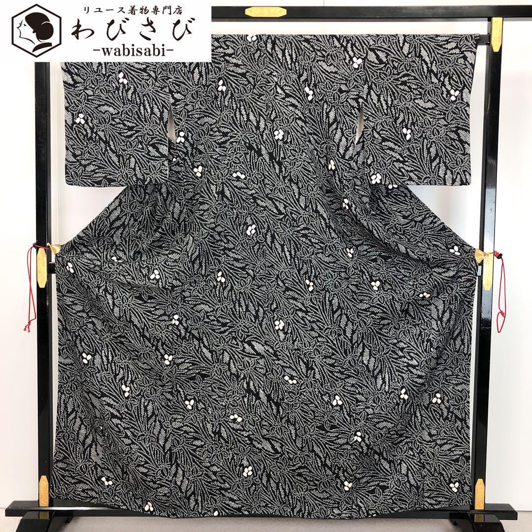 小紋 総絞り 鹿の子 花柄模様 黒色 K-4494 着物 きもの kimono 和服 和装 中古 リサイクル着物 【送料無料】 收藏