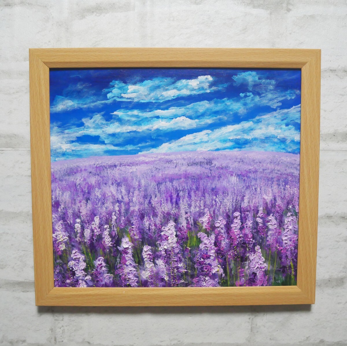 油絵 油彩 油彩画 絵 絵画【青空とラベンダー畑】 收藏