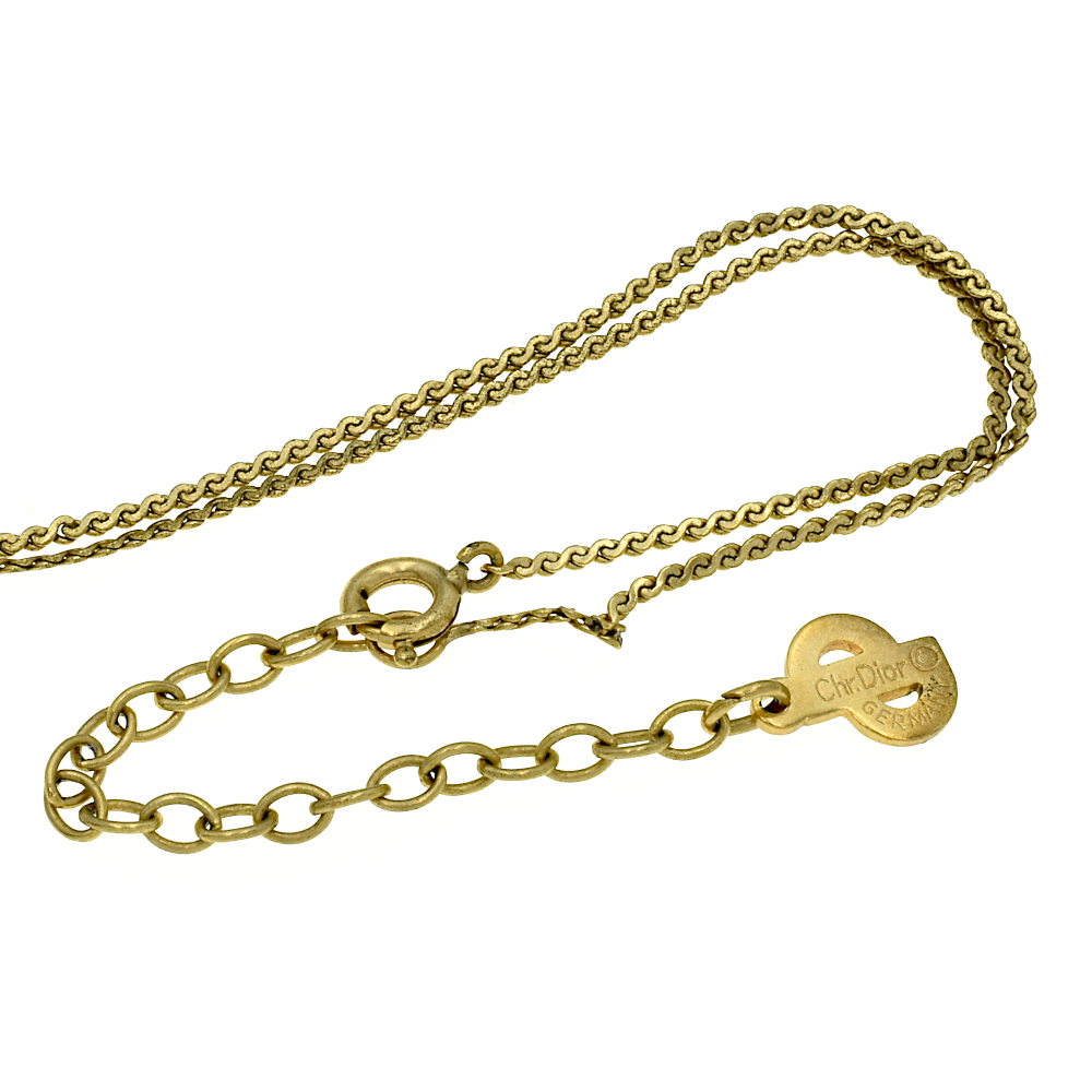 【A02083】Christian Dior クリスチャンディオール CDロゴ モチーフ ラインストーン ネックレス ゴールド 收藏