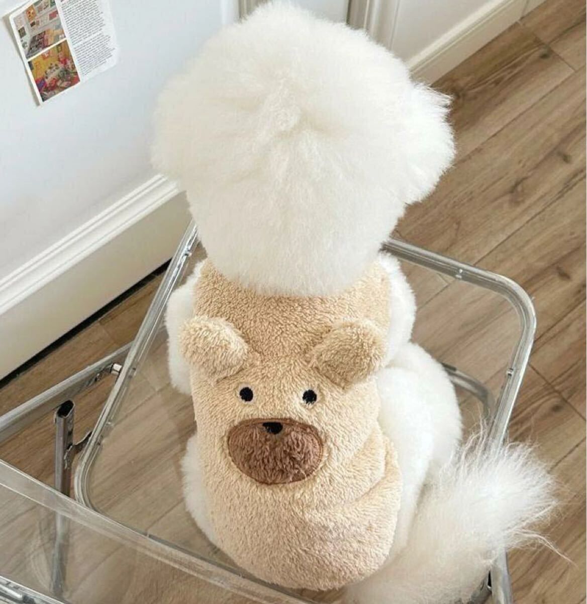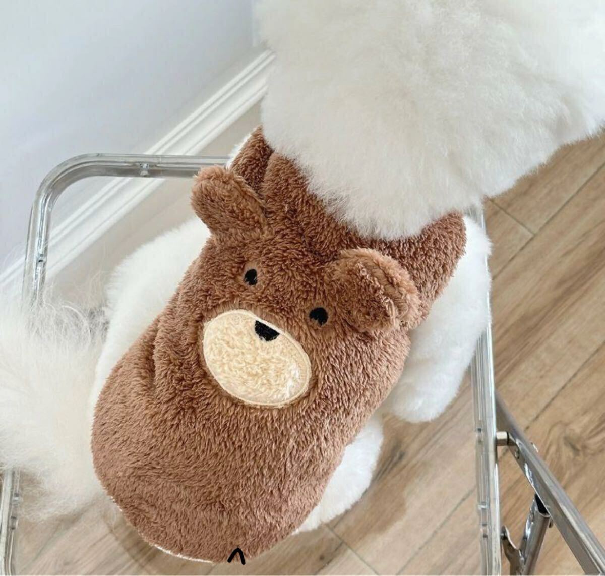 【XSサイズ】ペット 服 2枚セット 犬 ダックス もふもふ 韓国風 犬服 くまさんモチーフ ボア トレーナー 袖なし 冬服 收藏