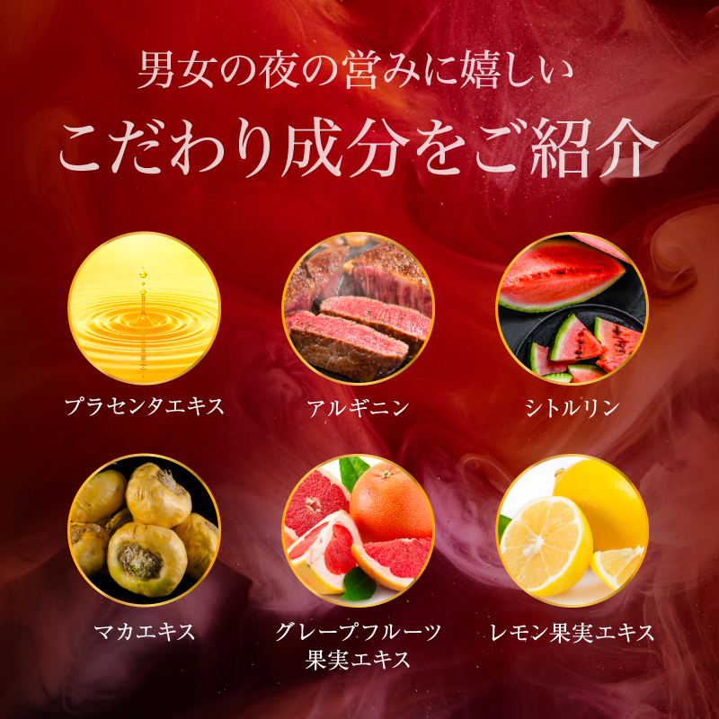 | 原材料名 | 精製水・PG・ポリアクリル酸Na・グレープフルーツ果実エキス・ローヤルゼリーエキス・ レモン果実エキス・スギナエキス・ホップエキス・セイヨウアカマツ球果エキス・ ローズマリー葉エキス・プラセンタエキス・アルギニン・シトルリン・マカエキス・ トンカットアリエキス・BG・エタノール・香料・EDTA-2Na・ PEG-60水添ヒマシ油・ブチルカルバミン酸ヨウ化プロピニル |