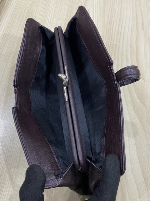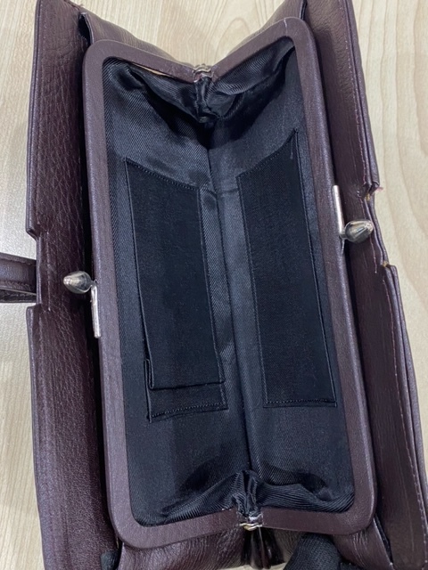 ●F7-6-65 美品 セカンドバッグ クラッチバッグ がま口 ハンドバッグ 小物入れや財布にも こげ茶色 横約27cm×縦約12cm×幅約4cm 收藏