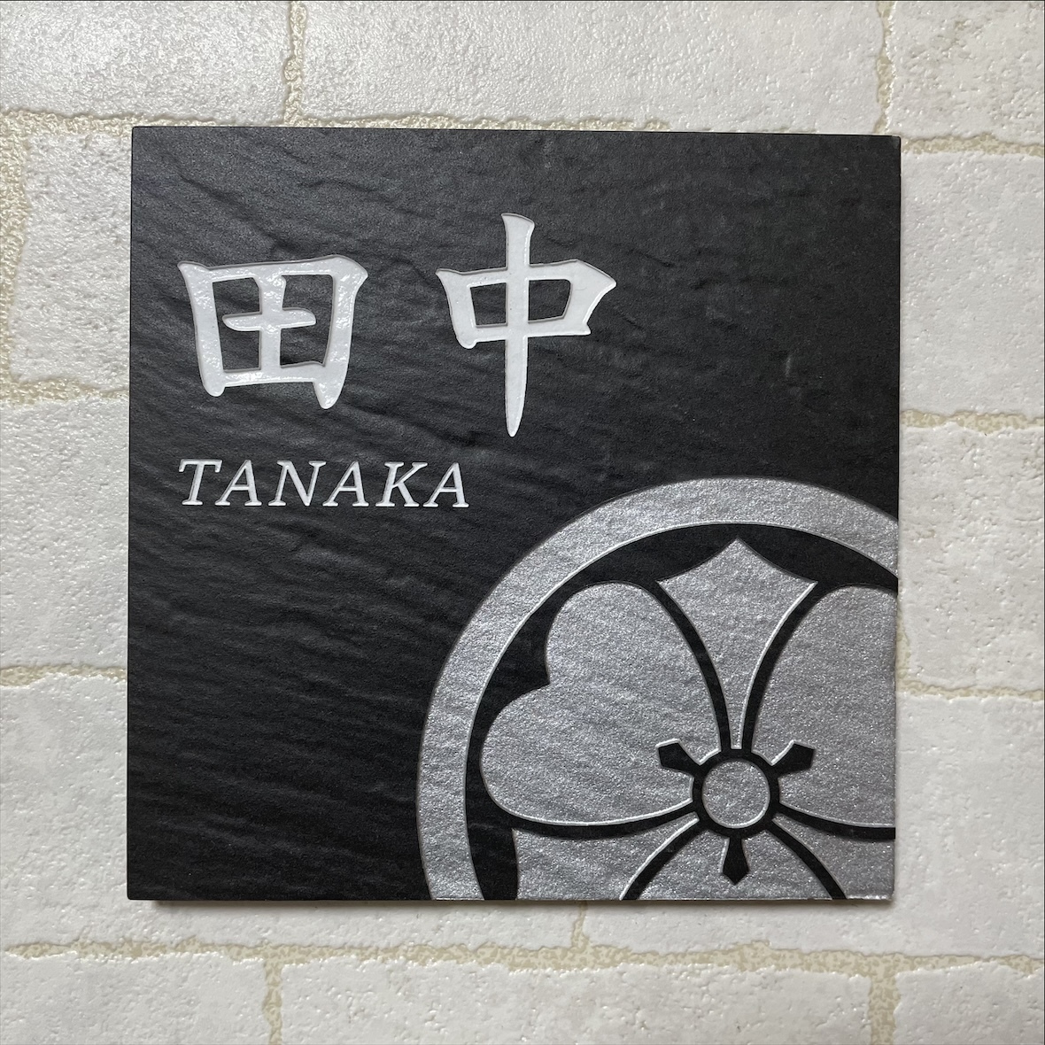 表札 見本品処分「田中 丸に剣片喰」150角タイル ネームプレート 家紋表札 收藏