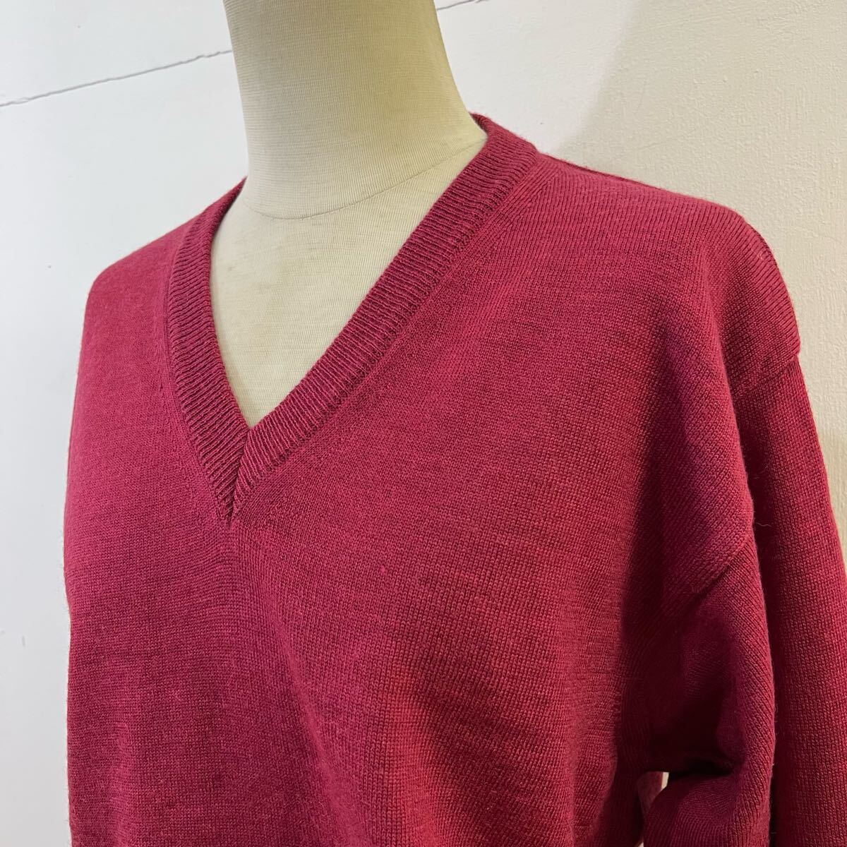 イタリア製 極上 阪急百貨店 オーダーメイド Vネックニット ニットセーター ウールニット 長袖ニット 赤系【レターパックプラス郵送可】A 收藏