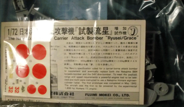 フジミ/1/72/日本帝国海軍愛知B7A1試製流星増加試作機SHOOTING STAR/未組立品/外箱欠 收藏