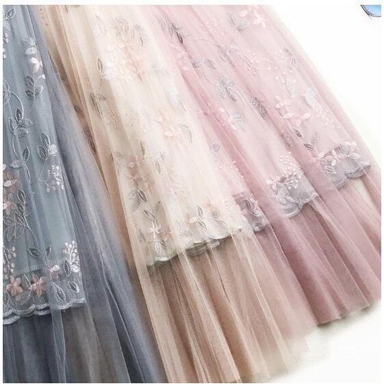 スカート フレアスカート レディース 刺繍 きれいめ レース フレア チュールスカート チュール プリーツ ロングスカートボトムス 收藏