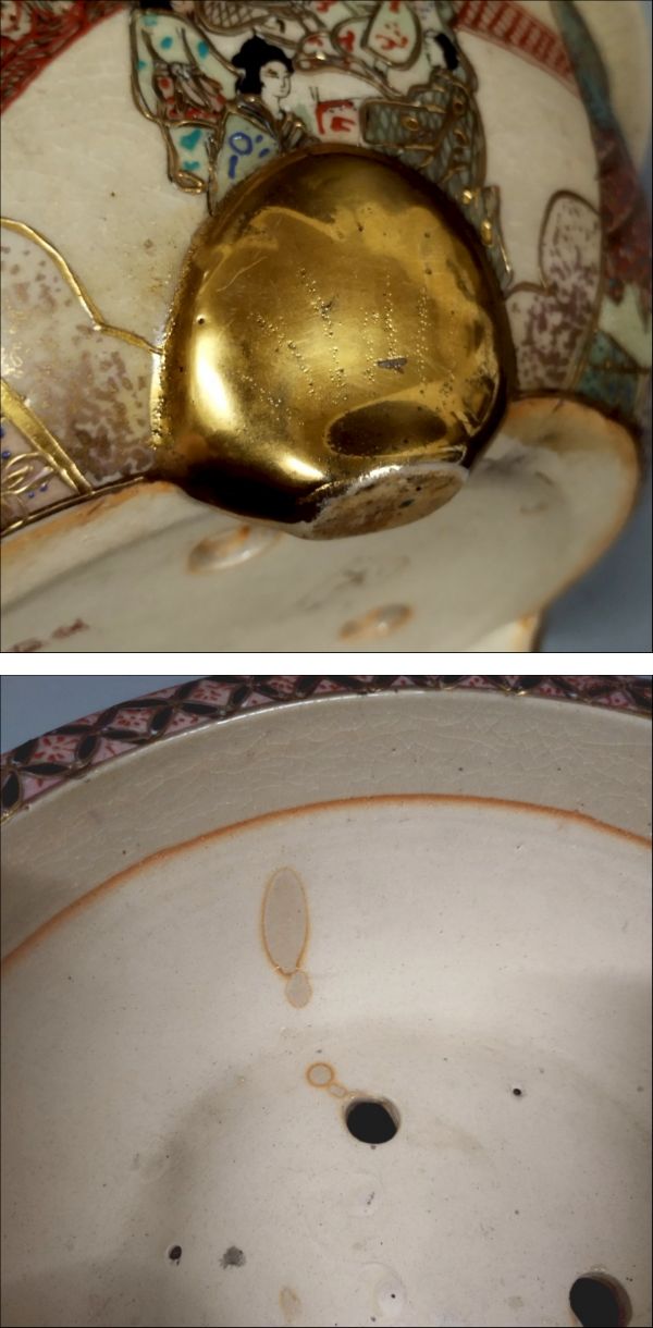 誠勲堂 盆栽鉢 植木鉢 三つ足 色絵 金彩 薩摩 071704N/T16(80) 收藏