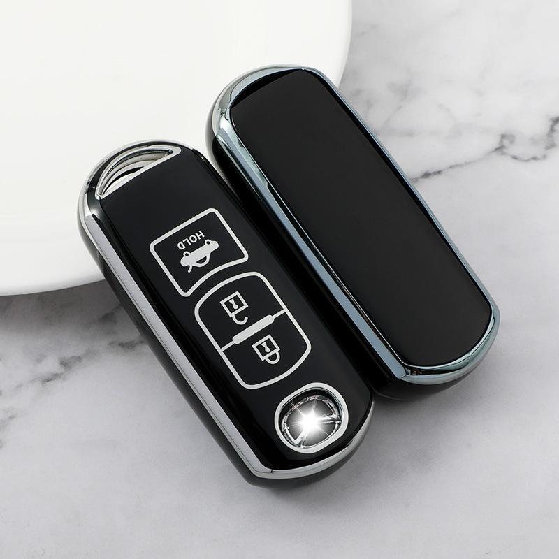 マツダ スマートキーケース TPU キーカバー CX-5/3 デミオ アテンザ ブラック×シルバー3 收藏