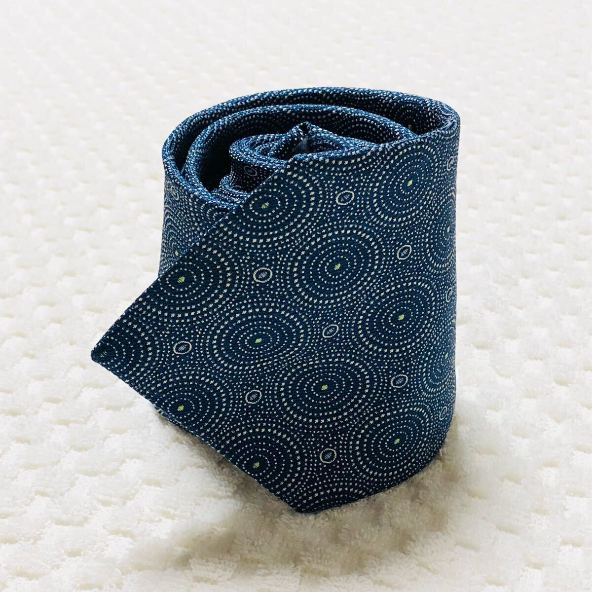 HERMES エルメス ネクタイ ドットの円 総柄 シルク100% フランス製 ブルー ビジネス 收藏