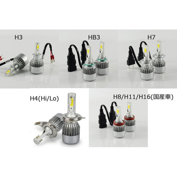 LEDヘッドライト C6 フォグランプ H1 H3 H7 HB3 HB4 COBチップ DC12V 72W 7600ルーメン 6000K ホワイト 2本セット 收藏