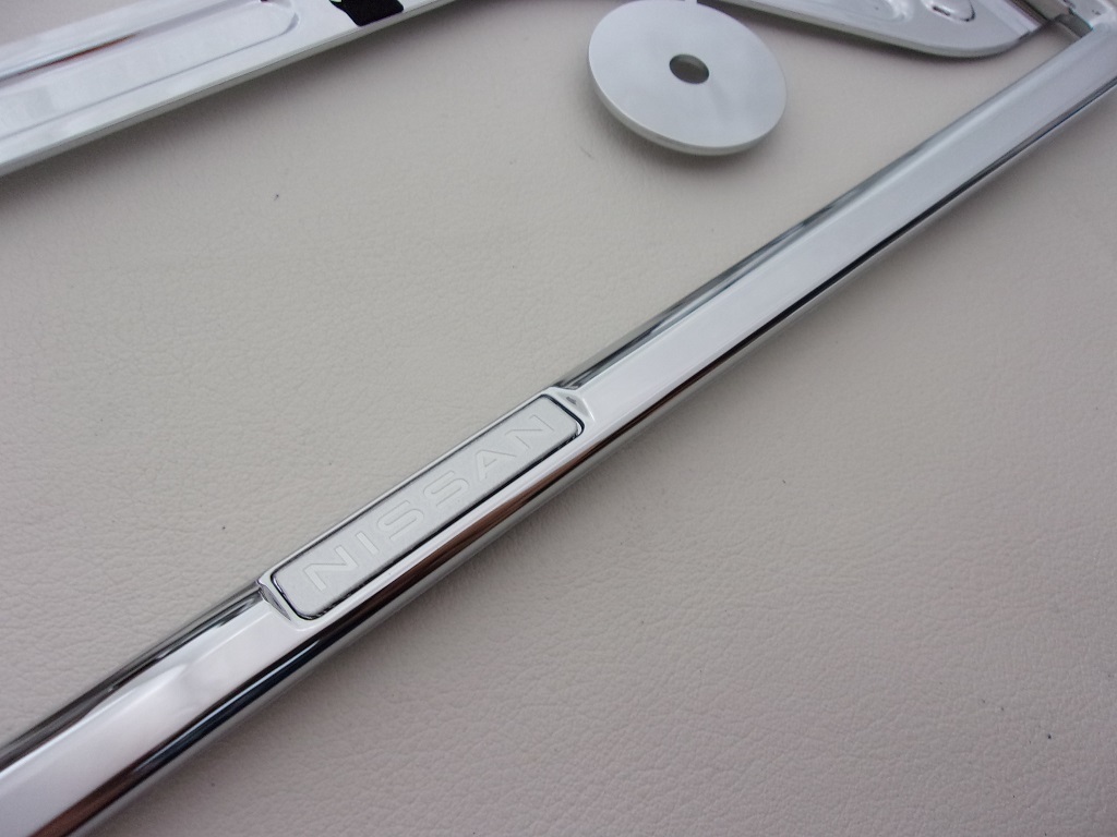 日産車全車種に対応!【 NISSAN 新デザイン ロゴ:アリア・リーフ・オーラなどに!】日産純正 クロームメッキ ナンバーフレーム フロント 收藏