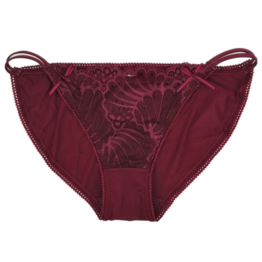 ショーツ レディース レース セクシー ランジェリー サテン ストレッチ ディリー 花柄レース シースルー 可愛い M ワインレッド 收藏