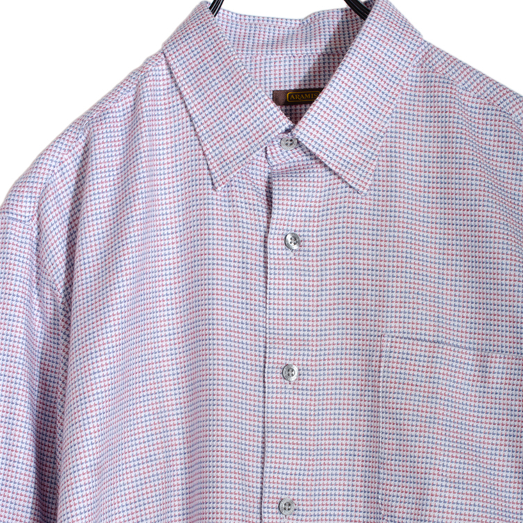 ARAMIS アラミス 長袖シャツ メンズ LLサイズ 白x青x赤 織柄 総柄 高級綿生地 大人 上品 日本製 入園式 入学式 卒業式 結婚式 通勤 收藏