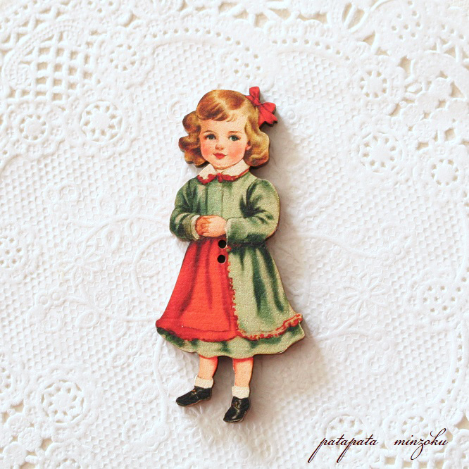 クリスマスのレトロガール フランス 製 木製ボタン アトリエ ボヌール ドゥ ジュール 犬 小物 雑貨 パタミン ボタン クリスマス 收藏
