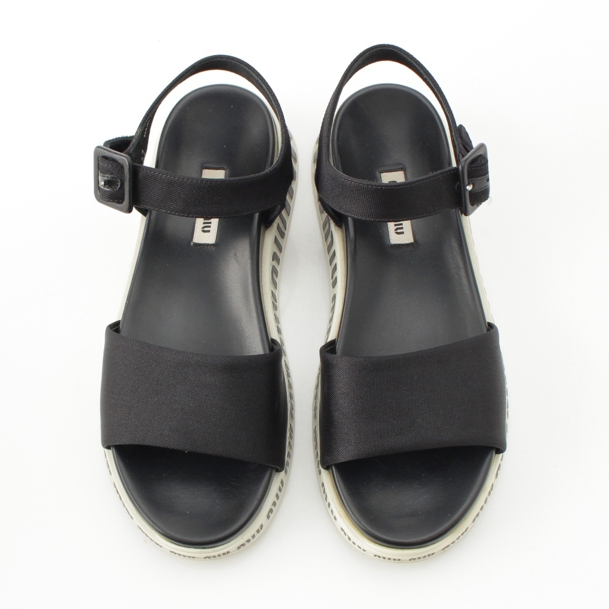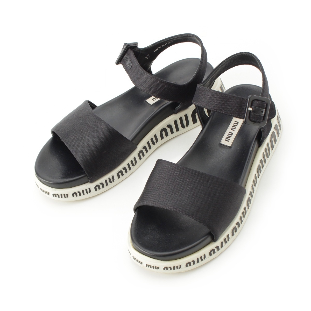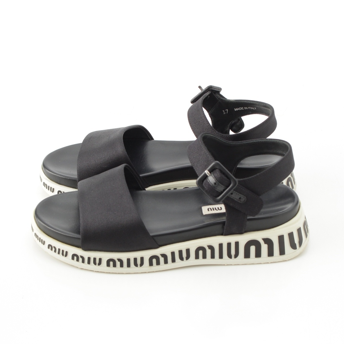 ミュウミュウ ロゴ ベルクロ サンダル 5X984B ブラック×ホワイト 37【中古】 收藏