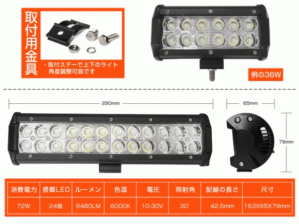 即納!人気商品 10個セットIP67 OSRAM製 LED作業灯72W 24連 夜釣り/各種作業車対応 DC10/30V LEDワークライト 業界最高 6000Kホワイト(207B) 收藏