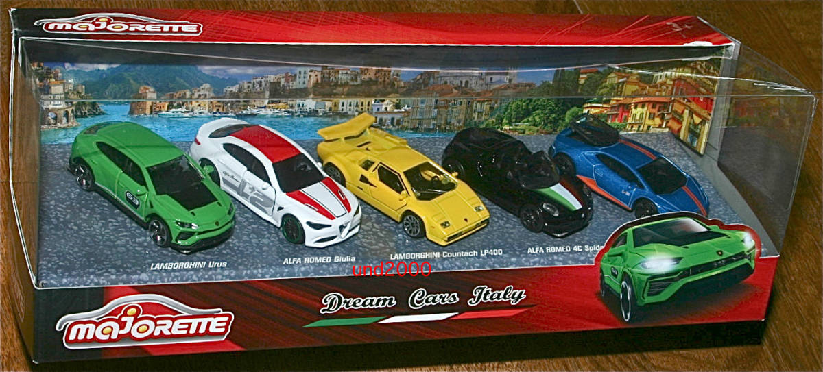 Majorette Dream Cars Italy Gift Pack。 イタリアのドリームカー5台セット。Lamborghini Urus、Alfa Romeo Giulia、Lamborghini Countach LP400、Alfa Romeo 4C Spider、Lamborghini Huracan Avio。並行輸入品。未使用新品。箱の透明プラスチックに割れがあり、状態が良くありません。量産品の製品のクオリティーについてはノークレームでお願いいたします。お支払いはヤフーかんたん決済のみ。東京発、ゆうパック持込60サイズ(東京700円 - 沖縄1330円)、または定形外郵便(追跡番号、保険無し)920円での発送となります。(上記の送料はこの出品物のみの料金となります。複数落札、同梱包発送の場合、重さ、サイズが変わりますので送料が変わります。)3日以内のご連絡、かんたん決済の支払期限内(通常5日、支払方法により異なります)のお支払い厳守でお願いします。入札される前に自己紹介もお読みください。 検索用ワード ランボルギーニ ウルス カウンタック ウラカン アヴィオ Lamborghini Huracan Avio アルファロメオ ジュリア フォーシー スパイダー