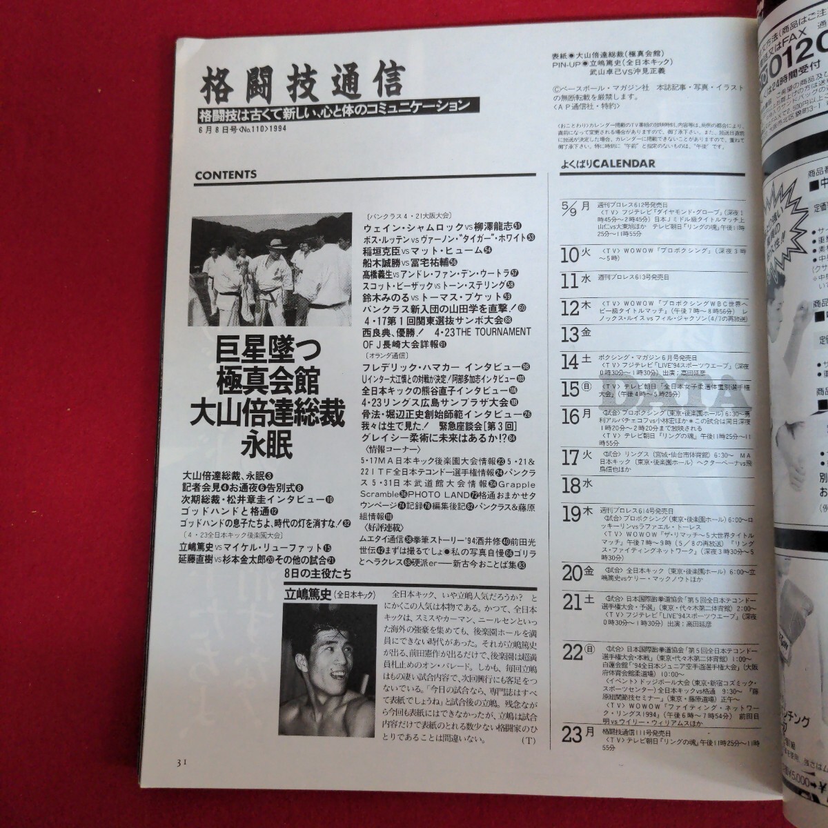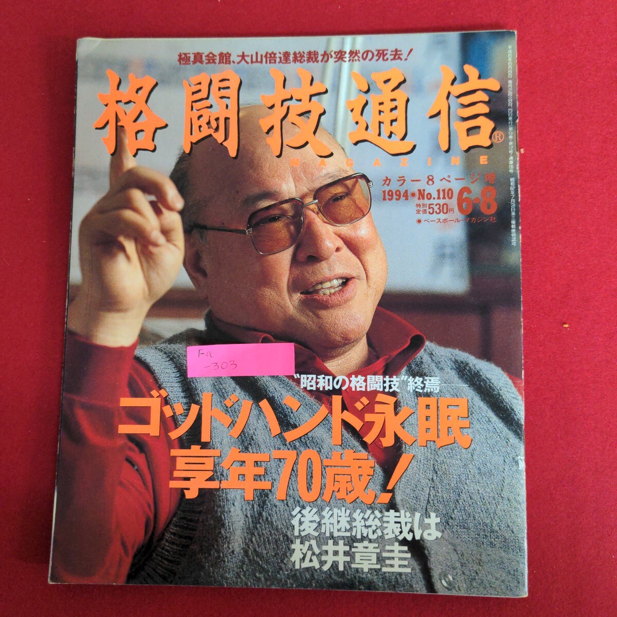 Fa-303/格闘技通信 1994年6月8日号 No.110 昭和の格闘技終焉 ゴッドハンド永眠享年70歳 後継者総裁は松井章圭/L2/70924 收藏