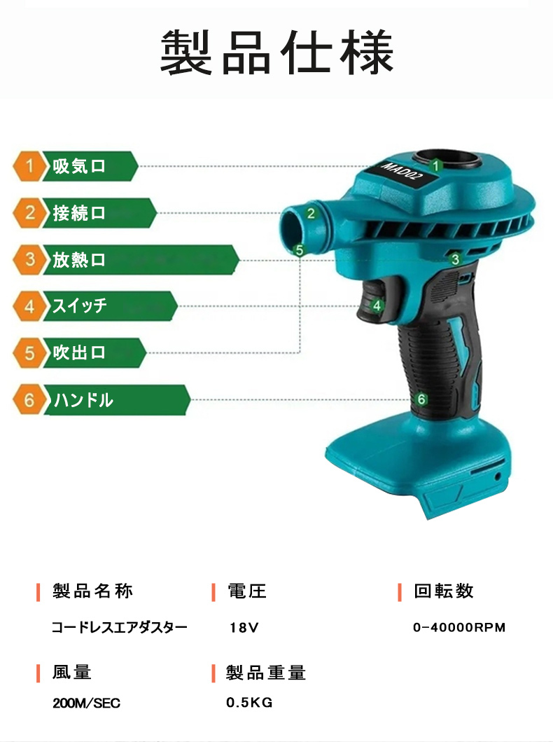 (A) マキタ makita 互換 充電式 エアダスター 電動 最大風速 150m/s コードレス ブロワ オフィス OA機器 18V 14.4V バッテリー 充電器 別売 收藏