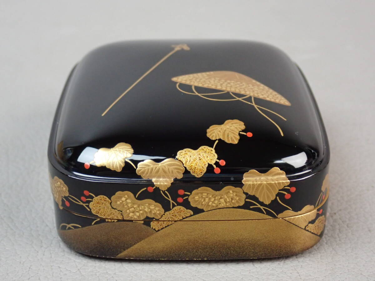 【骨董・茶道具】★輪島塗 奥野美峰★★編笠蔦文香合 柳生笠 gp099ul 收藏