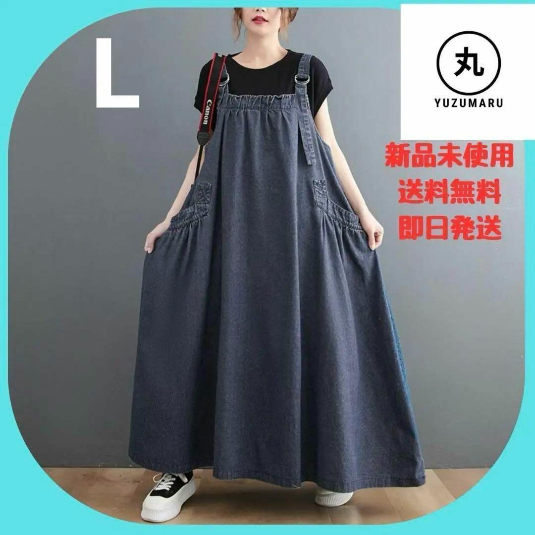 新品未使用 ダークブルー デニムオーバーオール L ゆったり 体型カバー 收藏