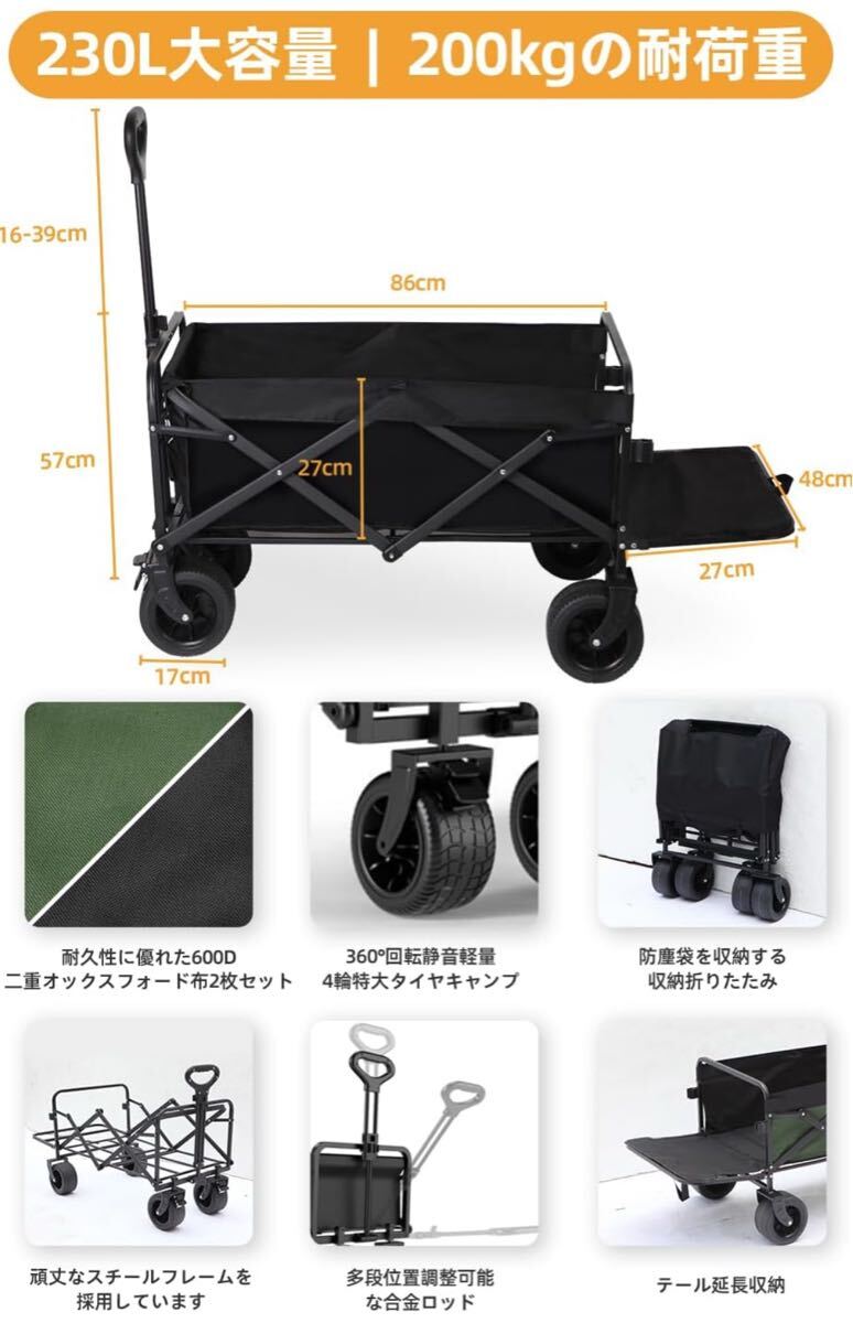 85 アウトドアワゴン230L大容量 耐荷重200kg 折り畳み キャリーカート 收藏