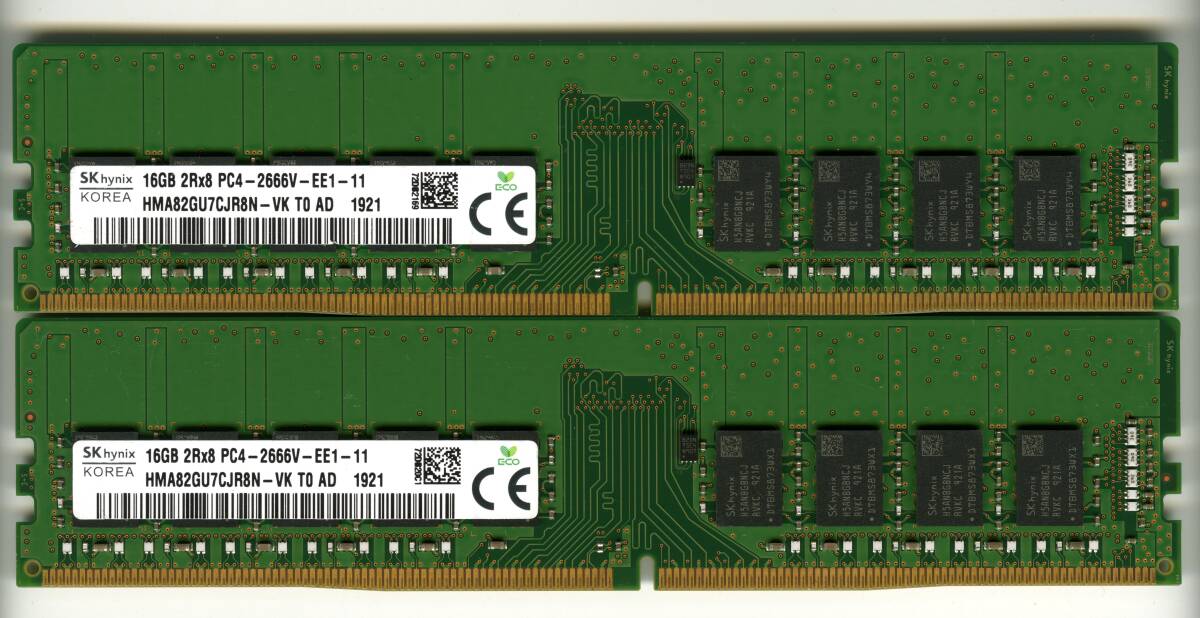 【ECC UDIMM】DDR4-2666、16GBの2枚セットで32GB、中古 SKhynix ECC Unbuffered 1921 收藏