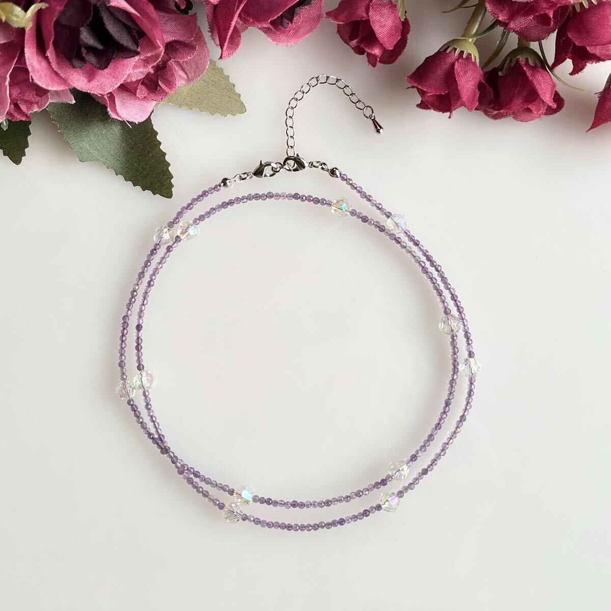 上質なアメジスト2mmカット玉と、虹色の輝きを放つアクアクリスタル6mm玉を、ステーションチェーン風に美しく配置したメガネチェーン兼ネックレスです。| 出价者 | 信用 | 价格 | 时间 |