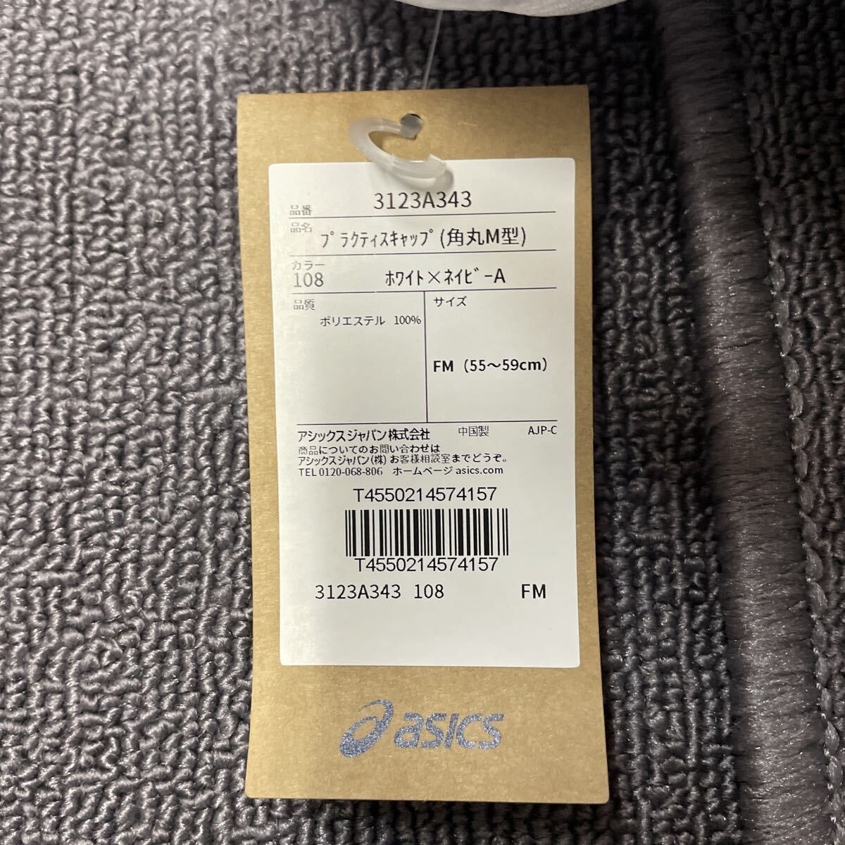 アシックス 3123A343 プラクティスキャップ 角丸M型 ホワイト×ネイビーA FM 3個 新品 收藏