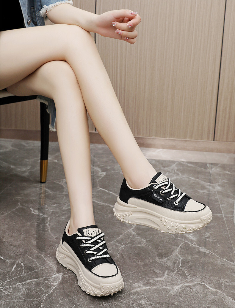 厚底スニーカー レディース 運動靴 軽量 美脚 インヒールシークレットシューズ 疲れにくい レースアップ 身長アップ ブラック 24.0 cm 收藏