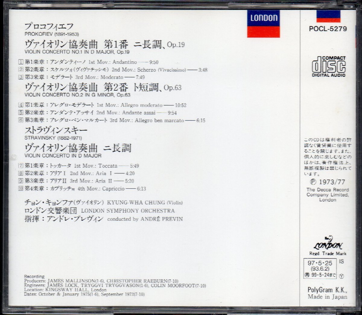 プロコフィエフ,ストラヴィンスキー:vn協奏曲集 チョン・キョンファ(vn) (POCL5279) 收藏