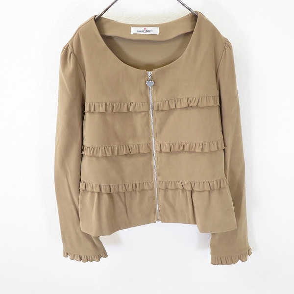 #a ギャラリービスコンティ GALLERYVISCONTI ジャケット ノーカラー 2 茶系 無地 フリル ジップアップ 長袖 920632 k01 收藏